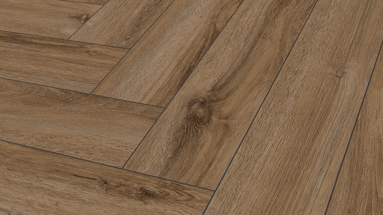 planeo Rigid Klick-Vinyl Herringbone - Oak bietet als Vinylboden eine pflegeleichte Alternative zu traditionellem Parkett, ohne die klassische Eleganz in der Optik zu verlieren.