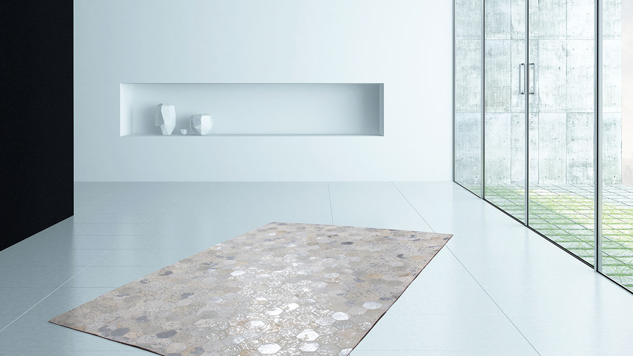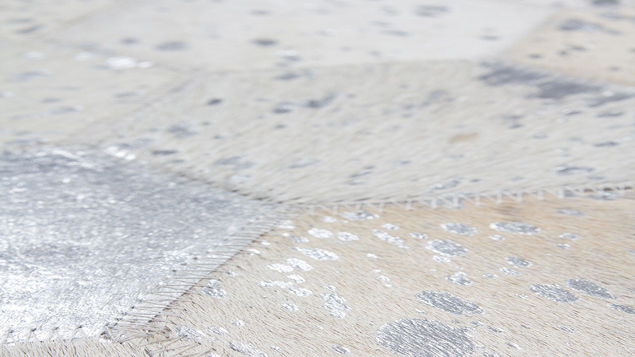 Der wunderschöne Lederteppich mit eingearbeiteten Applikationen aus metallischer Folie rundet jeden edlen Einrichtungsstil gekonnt ab. Der hochwertige Edel-Teppich aus 100 % Leder überträgt einen individuellen Touch auf seine Umgebung und erzeugt ein ganz besonderes Flair. Von Hand gefertigt ist jeder einzelne Lederteppich ein Unikat. Die Verwendung von edlen Naturmaterialien und die hochwertige Verarbeitung sorgen für ein dynamisches Aussehen und machen jeden Teppich einzigartig, denn bei Naturprodukten kann es in Form, Farbe und Muster zu Abweichungen von bis zu 30 % kommen. Das natürliche Fell kann nach einiger Zeit und bei hoher Beanspruchung gegebenenfalls an Haaren verlieren. Ebenso könnte sich die Metallicfolie unter Umständen ablösen. Dies ist dem Naturprodukt und der Beschaffenheit des Fells geschuldet und kein Produktionsfehler.