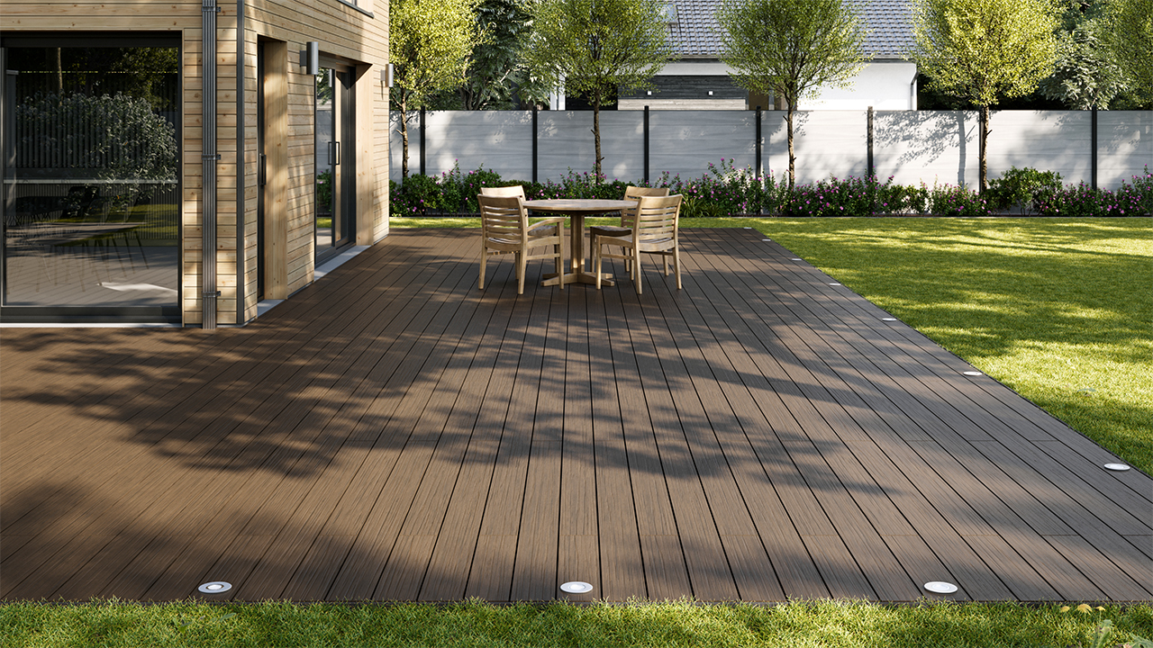 Die planeo WPC-Terrassendielen aus innovativem Holz-Kunststoffgemisch überzeugen durch die Vereinigung robuster und beständiger Eigenschaften mit einer modernen und strukturierten Holzoptik, die sich perfekt für Ihre Terrasse oder Ihren Balkon eignen.