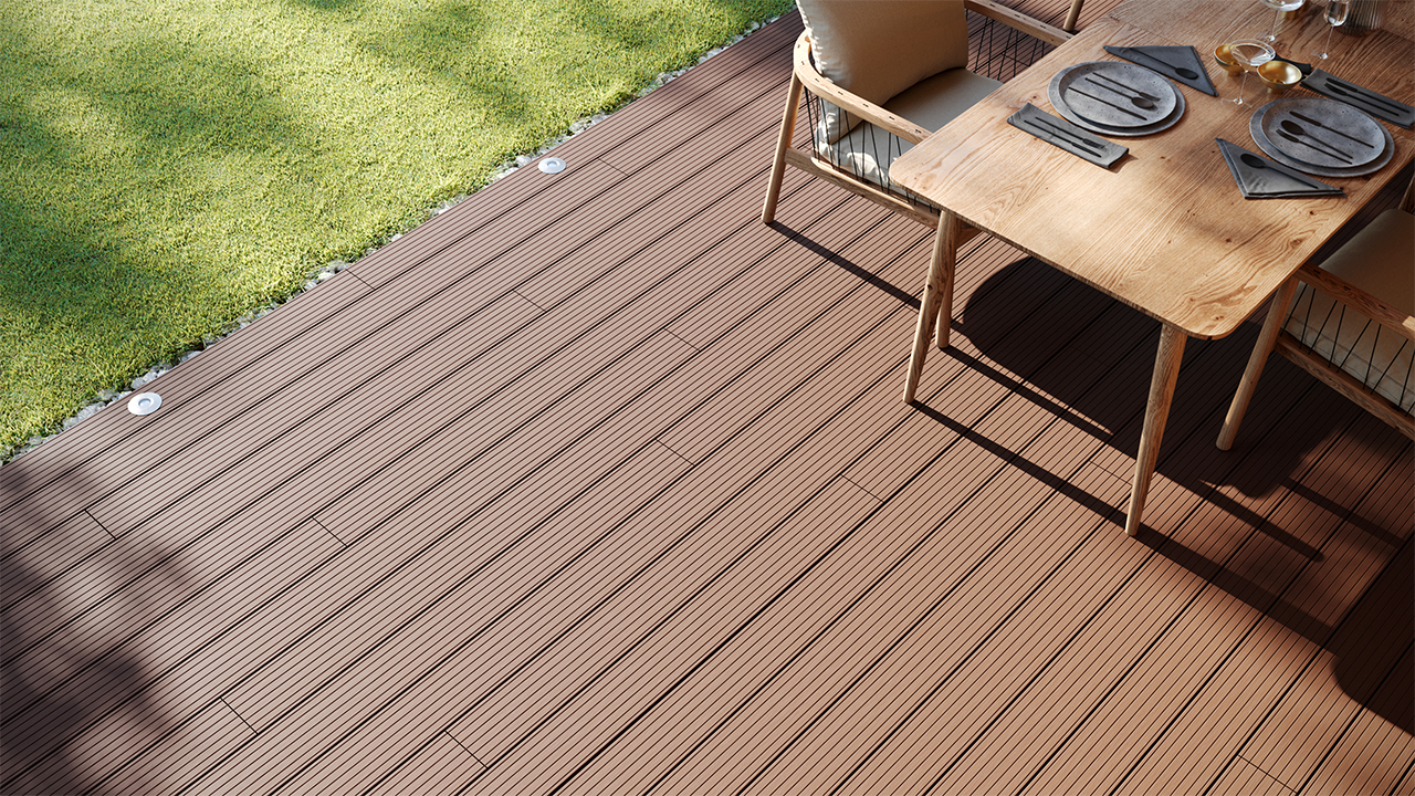 Die planeo WPC-Terrassendielen aus innovativem Holz-Kunststoffgemisch überzeugen durch die Vereinigung robuster und beständiger Eigenschaften mit einer modernen und strukturierten Optik die sich perfekt für Ihre Terrasse oder Ihren Balkon eignen.