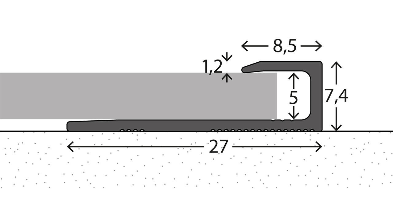 Das Abschlussprofil 341 ist ein universell einsetzbares Aluminium-Abschlussprofil. Es ist für Belagstärken von 4,5-5 mm ausgelegt und eignet sich als Abschlussprofil sowie als Türanschlagprofil - ideal für einen sauberen Kantenabschluss mit dauerhaftem Schutz der Belagskante.