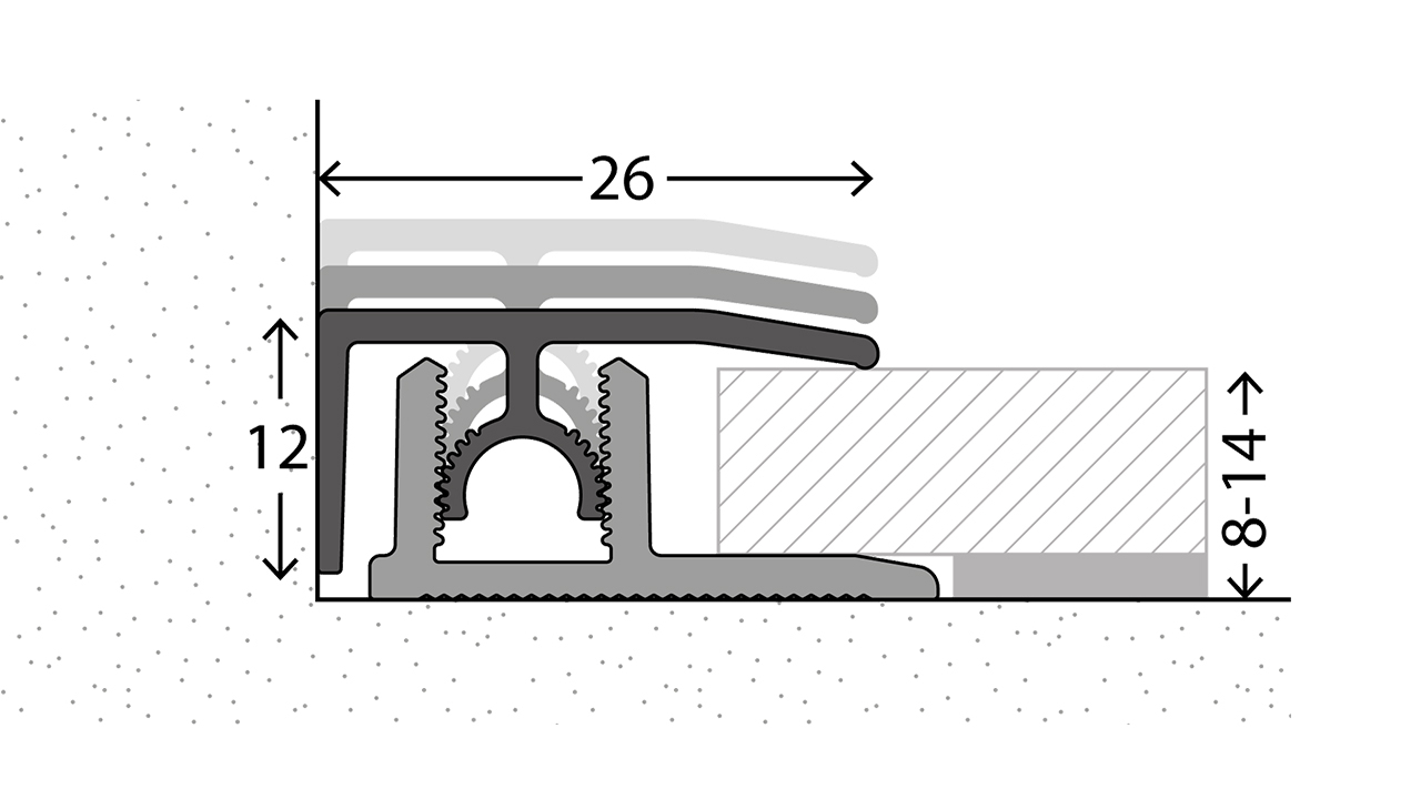 zu klebender Abschluss von Vinyl, Laminat und Parkett-Belägen von 8 bis 14mm Stärke | Basisprofil wird verklebt oder verschraubt