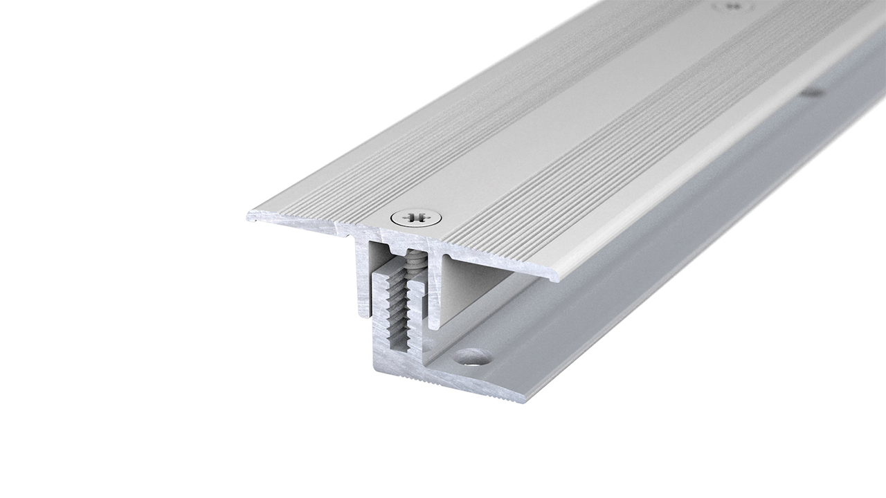 • Zweiteiliges System (Ober- & Basisprofil): erst Basisprofil verschrauben, Boden verlegen, dann Oberprofil aufsetzen und im Schraubkanal fixieren - schnell & sauber.