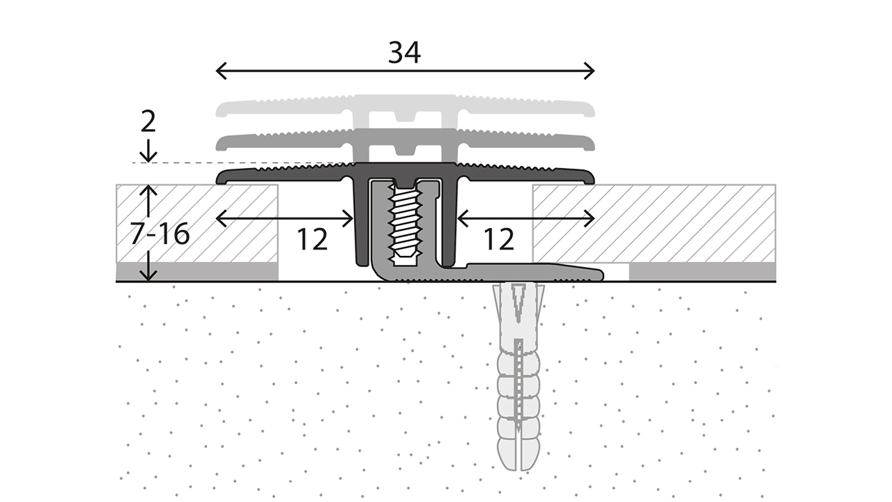 zu verschraubender Übergang von Vinyl, Laminat und Parkett-Belägen von 7 bis 16mm Stärke | inkl. Schrauben und Dübel