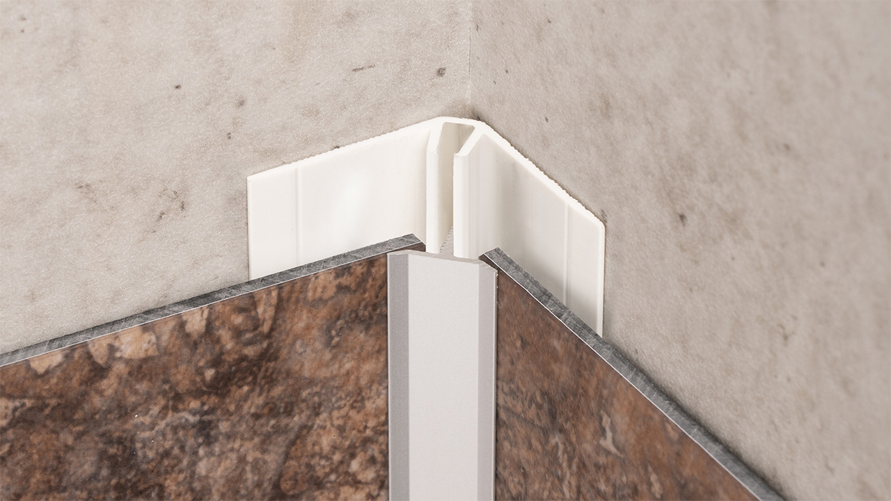 Der Innenwinkel 269 ist ein zweiteiliges Innenwinkelprofil für moderne Wandpaneele/Wandverkleidungen. Das System besteht aus einem Kunststoff-Basisprofil (Hart-PVC) und einem Aluminium-Oberprofil, das aufgeclipst wird und sich automatisch an die Paneelstärke anpasst - für eine sauber abgedeckte Innenecke, geschützte Schnittkanten und eine hochwertige Optik.